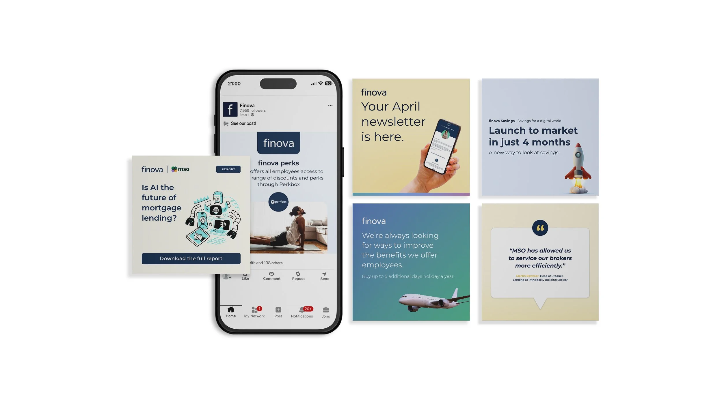 This collection showcases a range of social media posts I created for Finova, all developed specifically for LinkedIn. Each piece was designed to align with Finova’s visual identity while driving engagement and communicating clearly to their target audience. The work demonstrates my ability to adapt tone and style for varied campaigns, balancing creativity with strategy to deliver impactful content.